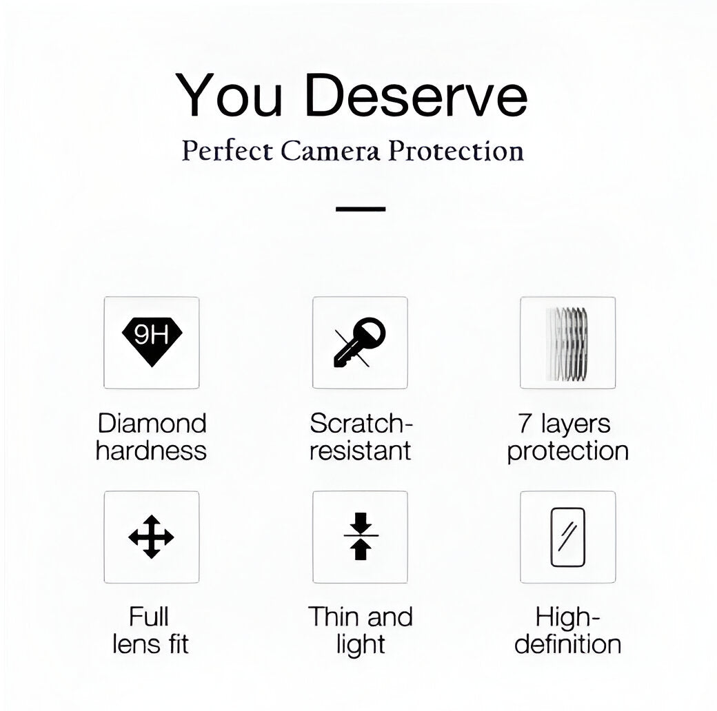 Premium Quality Black Camera Lens Tempered Glass Screen Protector.